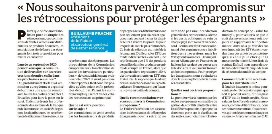 " Nous souhaitons parvenir à un compromis sur les rétrocessions pour protéger les épargnants "